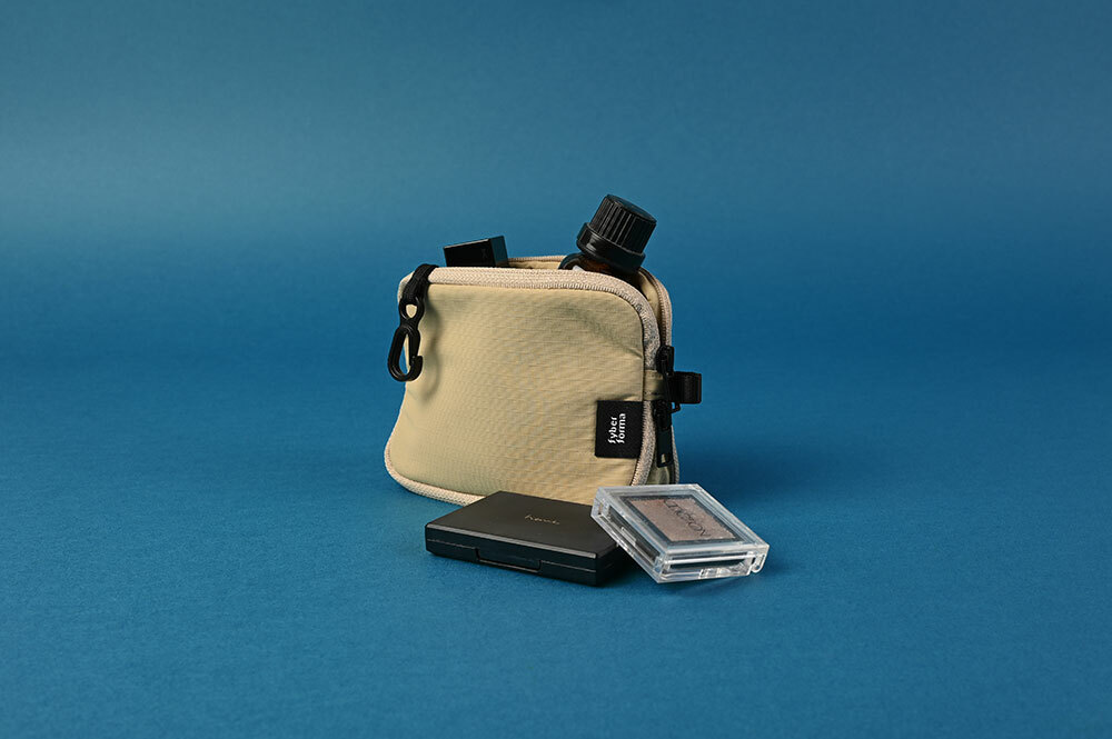 結合隨身小物包及飲料水瓶提袋於一身,除了可當日常的卡片鑰匙包之外,