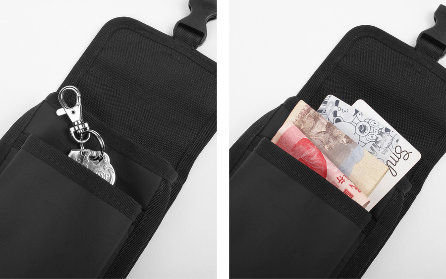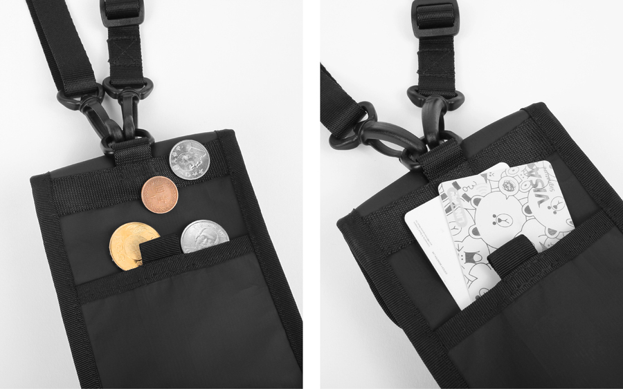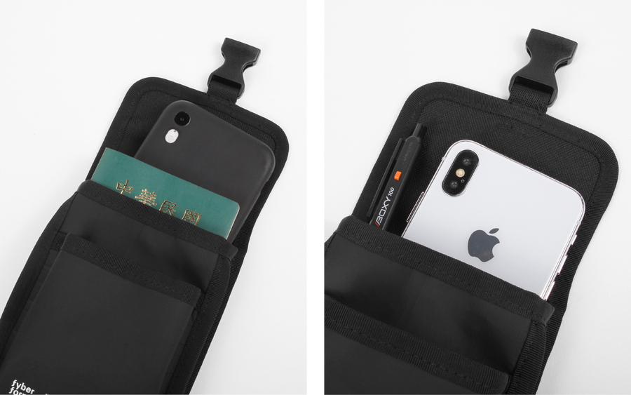 提供完整放置手機及護照、筆的長度,可調式快扣尚保留一些擴充的空間,可依照裝載物品做彈性調整。