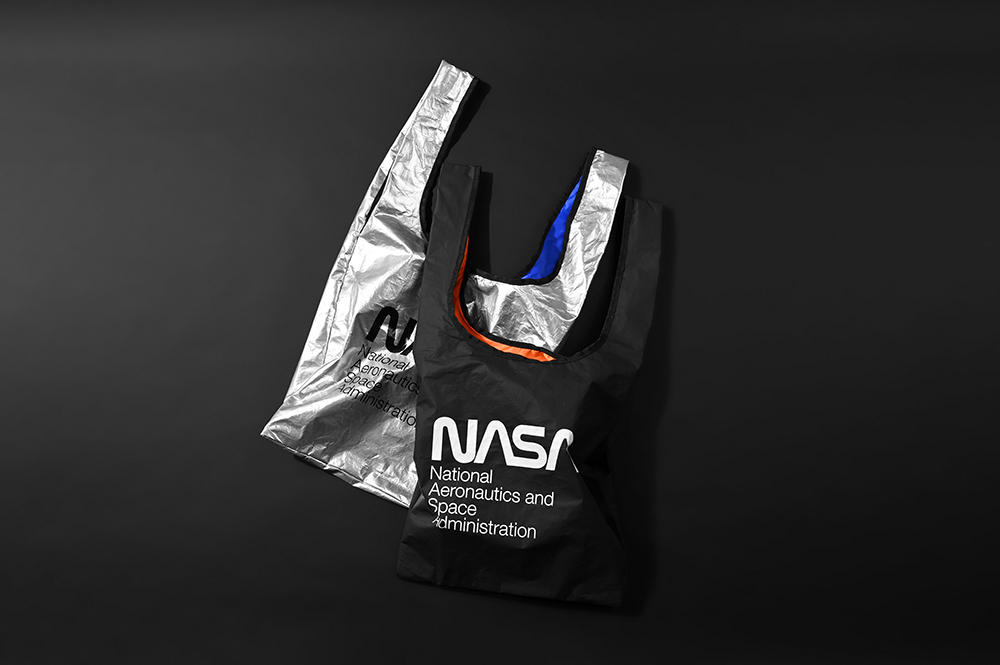 SPACE MISSION折疊環保袋,內外雙色配置以及NASA識別標誌與英文名的全新排版印刷,