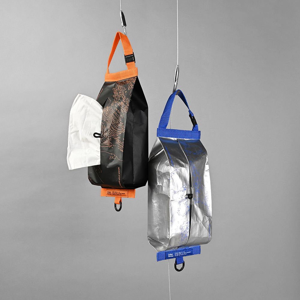 並以橘、藍呼應兩星體的代表色,應用於吊掛織帶系統及印刷上。